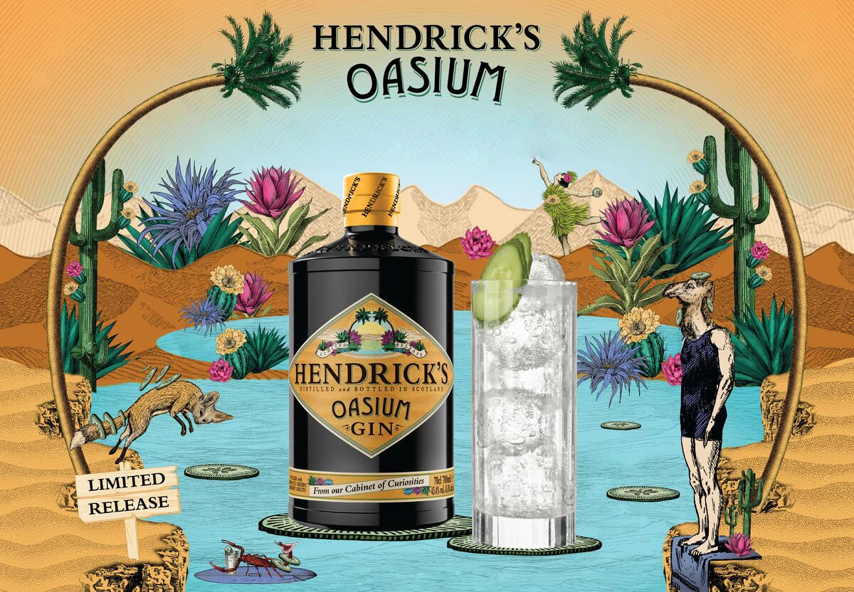 Hendrick's Oasium-ը սահմանափակ թողարկմամբ ջին է, պատրաստված բրենդի յուրահատուկ տասնմեկ բուսաբանական բաղադրիչներից՝ ներառյալ գիհի, գինձի, կիտրոնի, կեղևի, ինչպես նաև ծաղիկի և վարունգի հատուկ հավելումներով, որոնք խմիչքին հաղորդում են եզակի, թարմացնող և ծաղկային բուրմունք;
